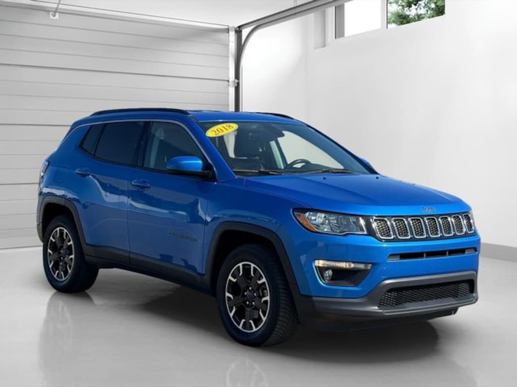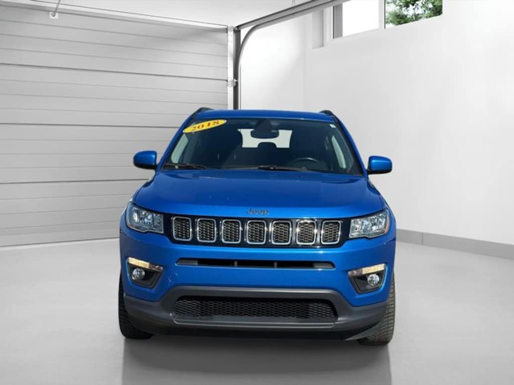 Certified. Laser Blue Pearlcoat 2018 Jeep Compass Latitude 9-Speed Automatic 2.4L I4 Compass Latitude, 2.4L I4, 4WD, Laser Blue Pearlcoat, Black Cloth, 115V Auxiliary Power Outlet, 4-Way Power Lumbar Adjust, 7.0" Touch Screen Display, Air Conditioning, All-Season Floor Mats, Auto-Dimming Rear-View Mirror, Cluster 7.0" Color Driver Info Display, Cold Weather Group, Heated Front Seats, Heated Steering Wheel, ParkView Rear Back-Up Camera, Popular Equipment Group, Power 8-Way Driver/Manual 6-Way Passenger Seats, Power windows, Quick Order Package 27J, Radio: Uconnect 4 w/7" Display, Reversible Carpet/Vinyl Cargo Mat, Steering wheel mounted audio controls, Wheels: 17" x 7.0" Silver Painted Aluminum, Windshield Wiper De-Icer.