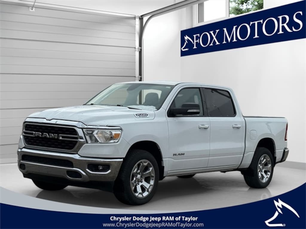 Bright White Clearcoat 2022 Ram 1500 Big Horn/Lone Star 8-Speed Automatic 3.6L V6 24V VVT 1500 Big Horn/Lone Star, 4D Crew Cab, 3.6L V6 24V VVT, 4WD, Bright White Clearcoat, Black Cloth, 2nd Row In Floor Storage Bins, 3.21 Rear Axle Ratio, 4G LTE Wi-Fi Hot Spot, 8.4" Touchscreen Display, Apple CarPlay, Auto-Dimming Exterior Driver Mirror, Auto-Dimming Rear-View Mirror, Big Horn Badge, Big Horn Level 1 Equipment Group, Black Exterior Mirrors, Black Premium Power Mirrors, Bluetooth Handsfree Phone & Audio, Class IV Receiver Hitch, Cluster 3.5" TFT Color Display, Connectivity - US/Canada, Convex Wide-Angle Mirror Insert, Exterior Mirrors Courtesy Lamps, Exterior Mirrors w/Heating Element, Exterior Mirrors w/Supplemental Signals, For Details, Visit DriveUconnect.com, Global Telematics Box Module (TBM), Glove Box Lamp, Google Android Auto, GPS Antenna Input, Integrated Center Stack Radio, ParkView Rear Back-Up Camera, Power 2-Way Driver Lumbar Adjust, Power 8-Way Driver Seat, Power Adjustable Pedals, Power-Folding Mirrors, Quick Order Package 23Z Big Horn, Radio: Uconnect 5 W w/8.4" Display, Rear Dome w/On/Off Switch Lamp, Rear Power Sliding Window, Rear Window Defroster, Remote Start System, SiriusXM Radio Service, SiriusXM Satellite Radio, Sun Visors w/Illuminated Vanity Mirrors, Universal Garage Door Opener, USB Host Flip, Wheels: 20" x 9" Aluminum Chrome Clad (WRK).
