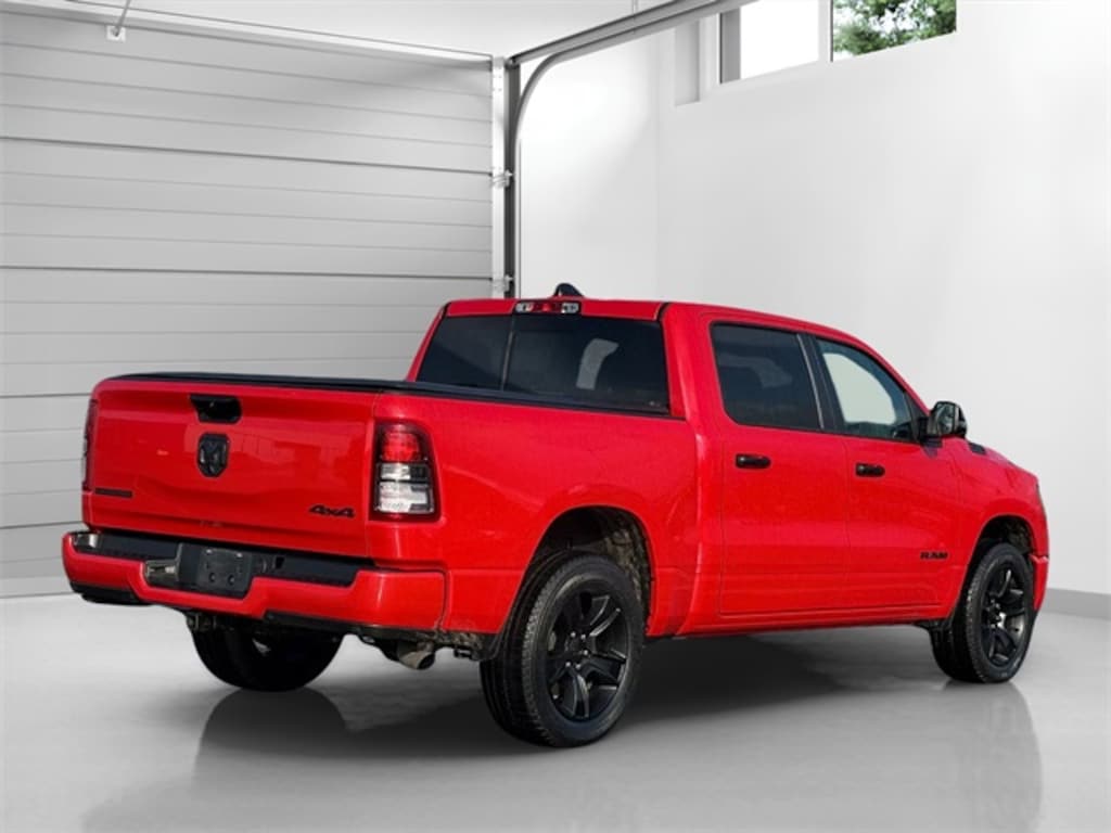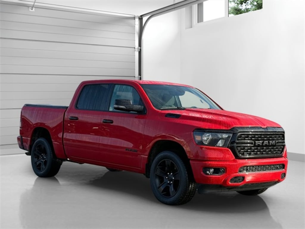 Flame Red Clearcoat 2023 Ram 1500 Big Horn/Lone Star 8-Speed Automatic 3.6L V6 24V VVT 1500 Big Horn/Lone Star, 4D Crew Cab, 3.6L V6 24V VVT, 4WD, Flame Red Clearcoat, Black Cloth, 115V Auxiliary Power Outlet, 2nd Row In Floor Storage Bins, 3 Rear Seat Head Restraints, 3.21 Rear Axle Ratio, 4 Way Front Headrests, 400W Inverter, 4G LTE Wi-Fi Hot Spot, 8.4" Touchscreen Display, 9 Amplified Speakers w/Subwoofer, Accent Color Door Handles, Accent Color Premium Power Mirrors, Air Conditioning ATC w/Dual Zone Control, Anti-Spin Differential Rear Axle, Apple CarPlay, Auto-Dimming Exterior Driver Mirror, Auto-Dimming Rear-View Mirror, Bed Utility Group, Big Horn Badge, Big Horn Level 2 Equipment Group (DISC), Black Exterior Mirrors, Black Exterior Truck Badging, Black Headlamp Bezels, Black Interior Accents, Black Painted Exterior Mirrors Caps, Black Premium Power Mirrors, Bluetooth Handsfree Phone & Audio, Body Color Front Bumper, Body Color Rear Bumper w/Step Pads, Bucket Seats, Center Console Parts Module, Class IV Receiver Hitch, Cluster 7.0" TFT Color Display, Connectivity - US/Canada, Convex Wide-Angle Exterior Mirror Insert, Deluxe Cloth Bucket Seats, Dual Exhaust w/Black Tips, Electric Shift-On-Demand Transfer Case, Exterior Mirrors Courtesy Lamps, Exterior Mirrors w/Heating Element, Exterior Mirrors w/Supplemental Signals, For Details, Visit DriveUconnect.com, For More Info, Call 800-643-2112, Front Fog Lamps, Front Seat Back Map Pockets, Full Length Floor Console, Glove Box Lamp, Google Android Auto, GPS Antenna Input, Heated Front Seats, Heated Steering Wheel, Integrated Center Stack Radio, LED Footwell Lighting, Manual Adjust 4-Way Front Passenger Seat, Media Hub w/2 Charge Only USBs, MOPAR 4 Adjustable Cargo Tie-Down Hooks, MOPAR Deployable Bed Step, MOPAR Spray In Bedliner, Night Edition, ParkSense Front/Rear Park Assist w/Stop, ParkView Rear Back-Up Camera, Pick-Up Box Lighting, Power 2-Way Driver Lumbar Adjust, Power 8-Way Driver Seat, Power Adjustable Pedals, Power-Folding Mirrors, Quick Order Package 23Z Big Horn, Radio: Uconnect 5 W w/8.4" Display, RAM Grille Badge - Black, Rear 60/40 Folding Seat, Rear Center Armrest, Rear Dome w/On/Off Switch Lamp, Rear Power Sliding Window, Rear Window Defroster, Remote Start System, Security Alarm, SiriusXM Satellite Radio, Steering wheel mounted audio controls, Sun Visors w/Illuminated Vanity Mirrors, Universal Garage Door Opener, USB Host Flip, Wheels: 20" x 9.0" Premium Paint/Polished.